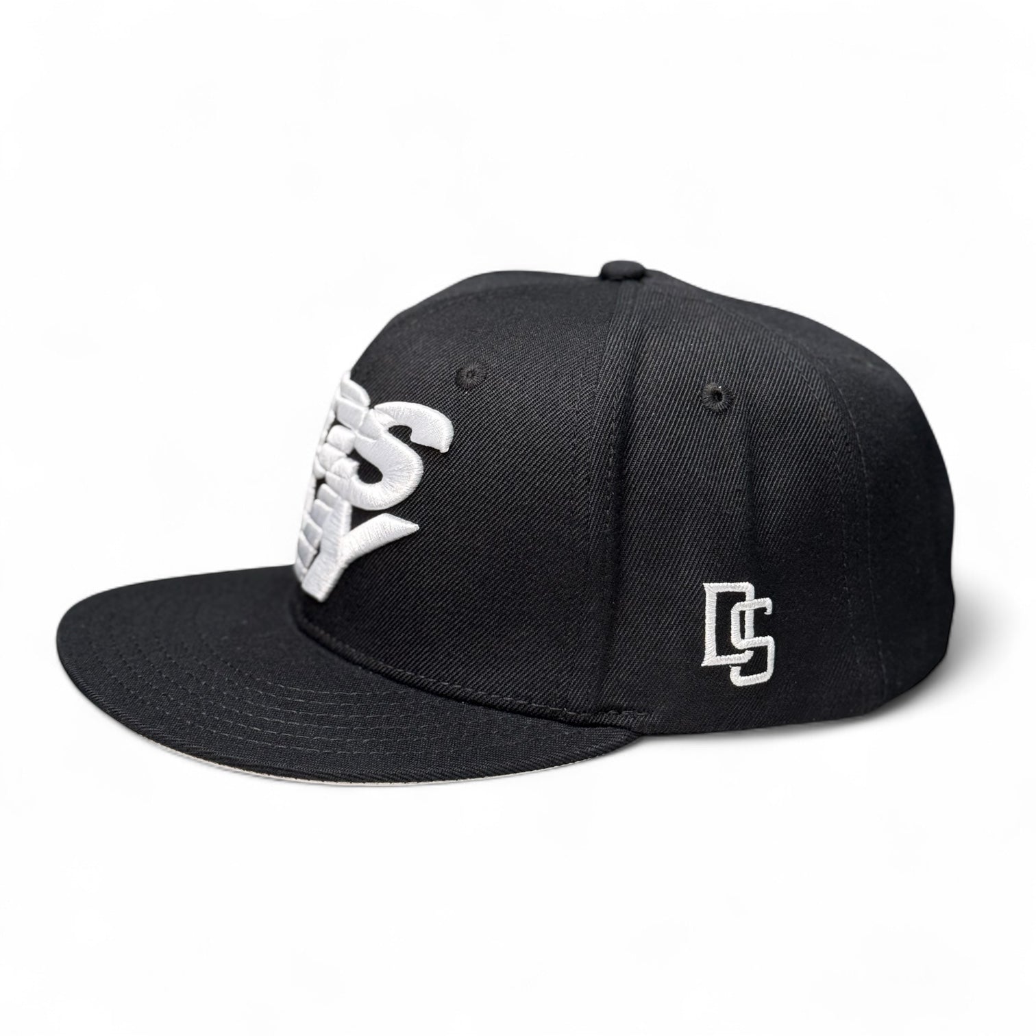 Premium wool-blended snapback cap for luxurious look. 6-panel structured cap with 6 eyelets and flat round visor. Matching plastic snapback closure with 6 rows of stitching on visor.